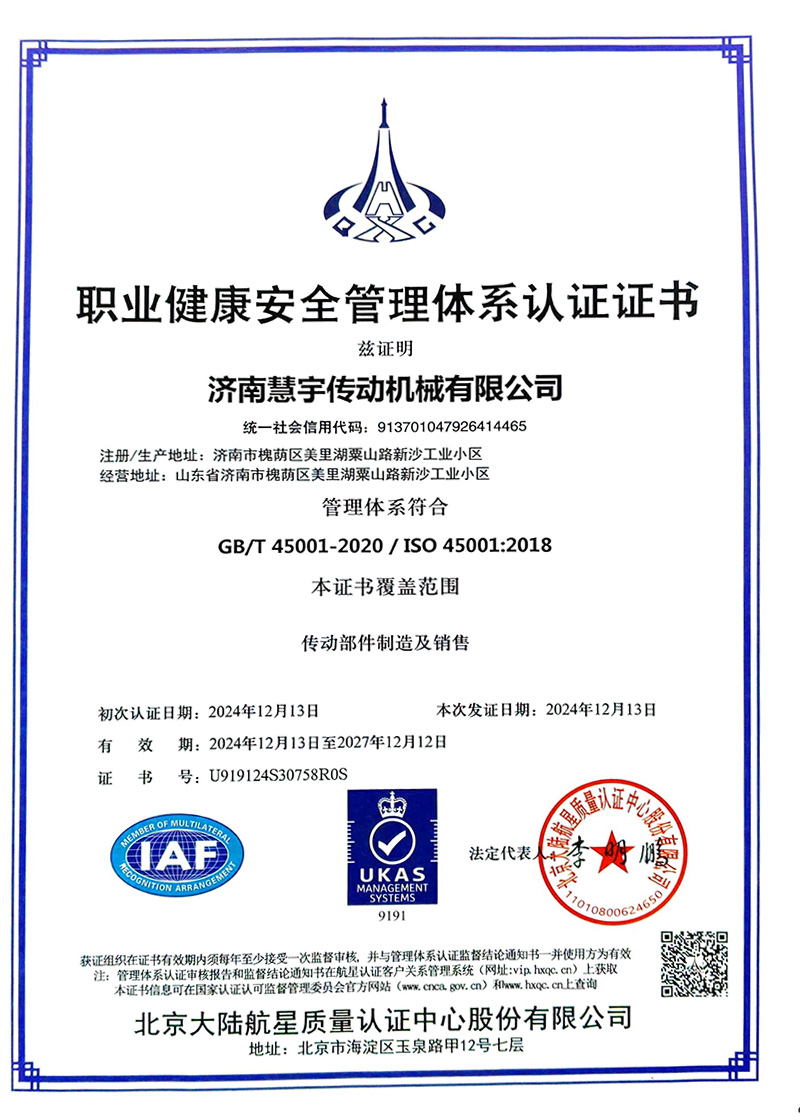 • 职业健康体系认证证书